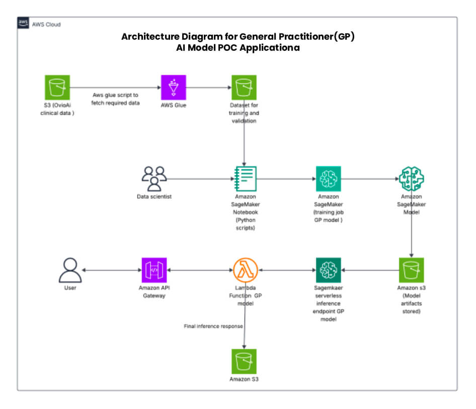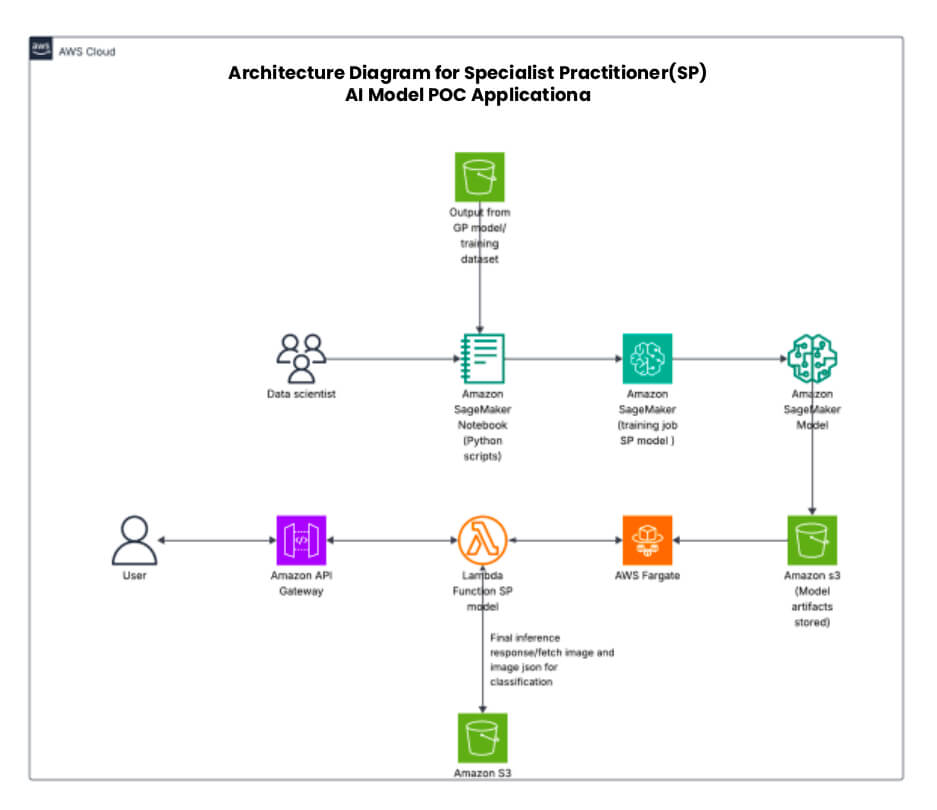 - Amazon S3– Serves as the centralized storage for datasets, model artifacts, and inference outputs.
